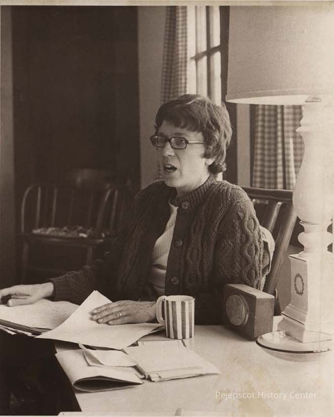 A cropped version of this black and white photo of Lucy Miller was published in The Times Record in Brunswick, Maine, on 11/13/1975 accompanying an article about the Friends of the Bath Marine Museum.