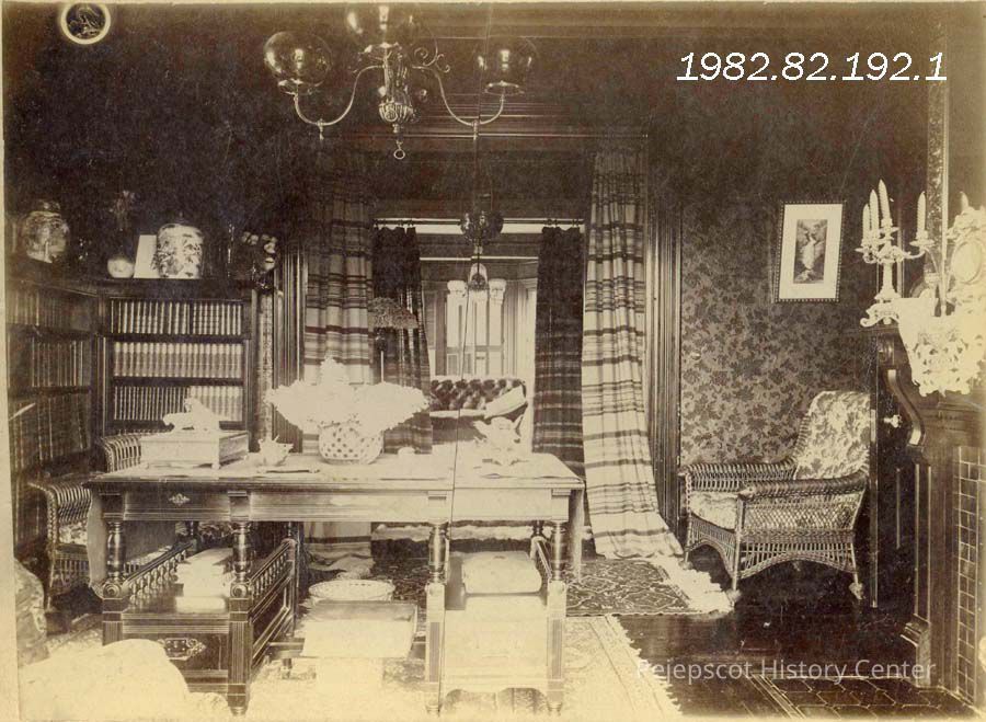 A B/W photograph of Lunt Library, possibly located at 4 Summer Street, Brunswick, Maine. Undated.