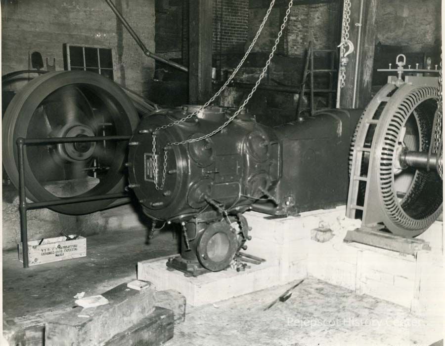 A B/W photograph of some large machinery at Verney Mill. Undated