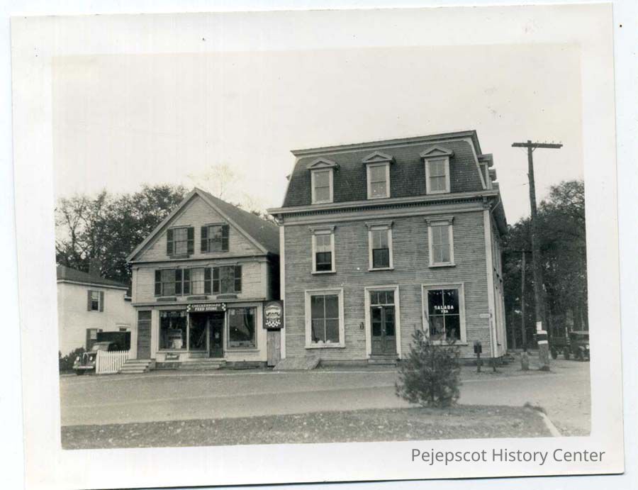 B/W photo of the buildings at 195 Maine and Cleveland streets. October 19, 1939. Short's Market, Girl Scout Hall