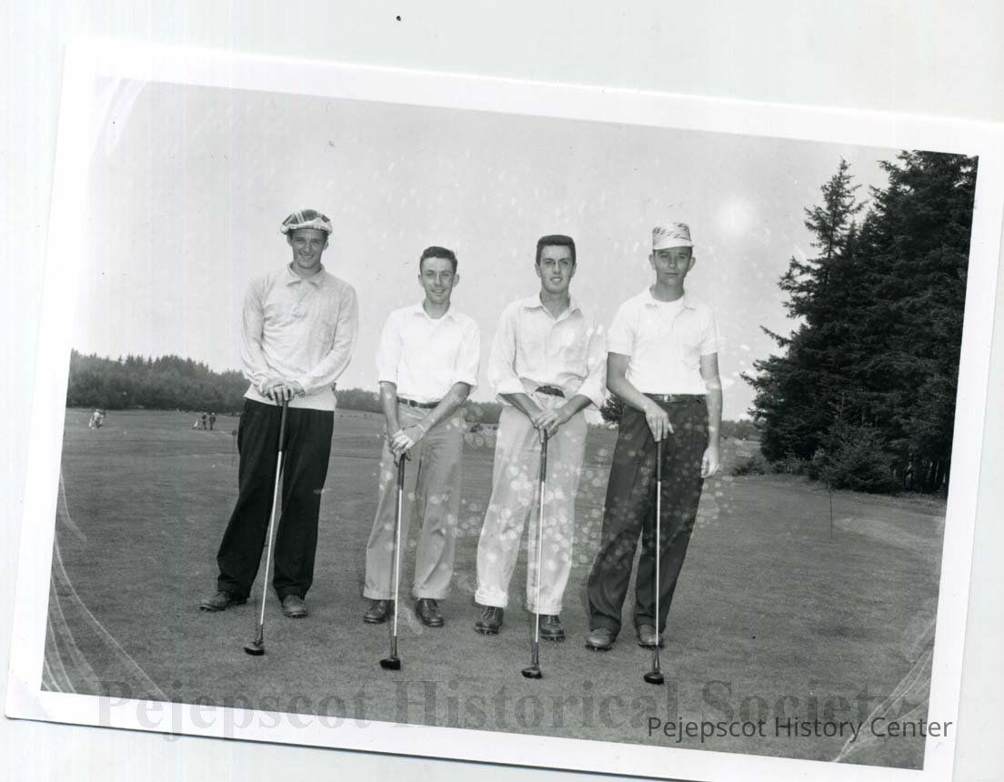 Maine Junior Golf Championship semi-finalists pose for the camera on June 22, 1955. They are Powers McLean, Hallowell; Dan Donovan, Edward Little; Jack Morrison, Brunswick; and Dick Hanscom, SanfordLexicon