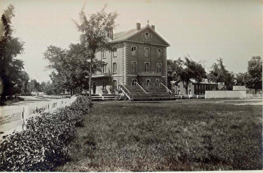 A B/W photo of Maine Medical School, Bowdoin College, Brunswick, ME. The Medical School existed from 1820-1921. Dated ca. 1890.