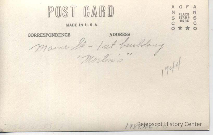 Postcard of Maine Street near Elm Street, Brunswick, Maine, in 1944.Lexicon