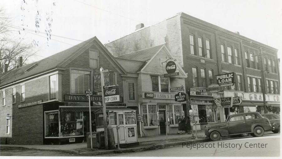 Wilson's Drug Store, Day's Shoe Store, W. T. Grant & Co., Stores - Brunswick, Lincoln Street, Maine Street, Architecture, Brunswick, Streets - Maine