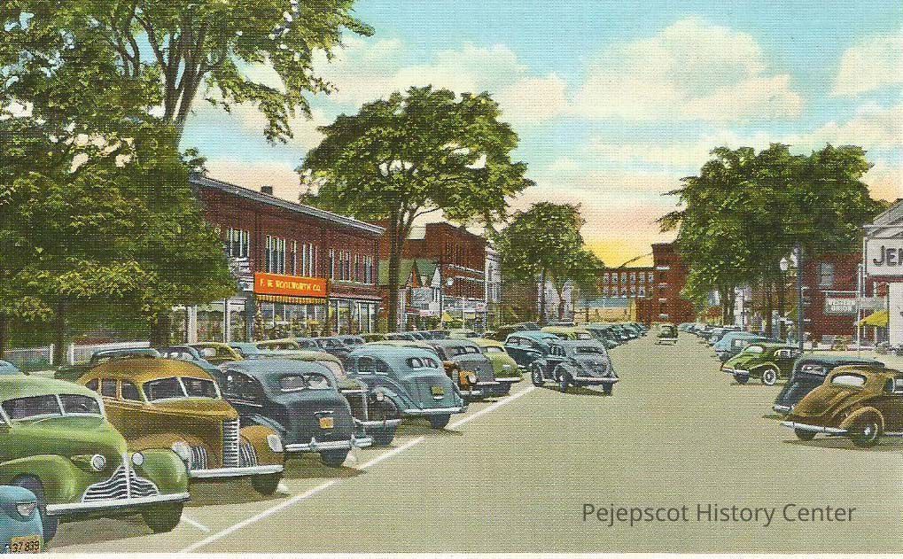 A colorized picture postcard of Main (Sp?) Street. This is a colorized version of 1991.3.1.