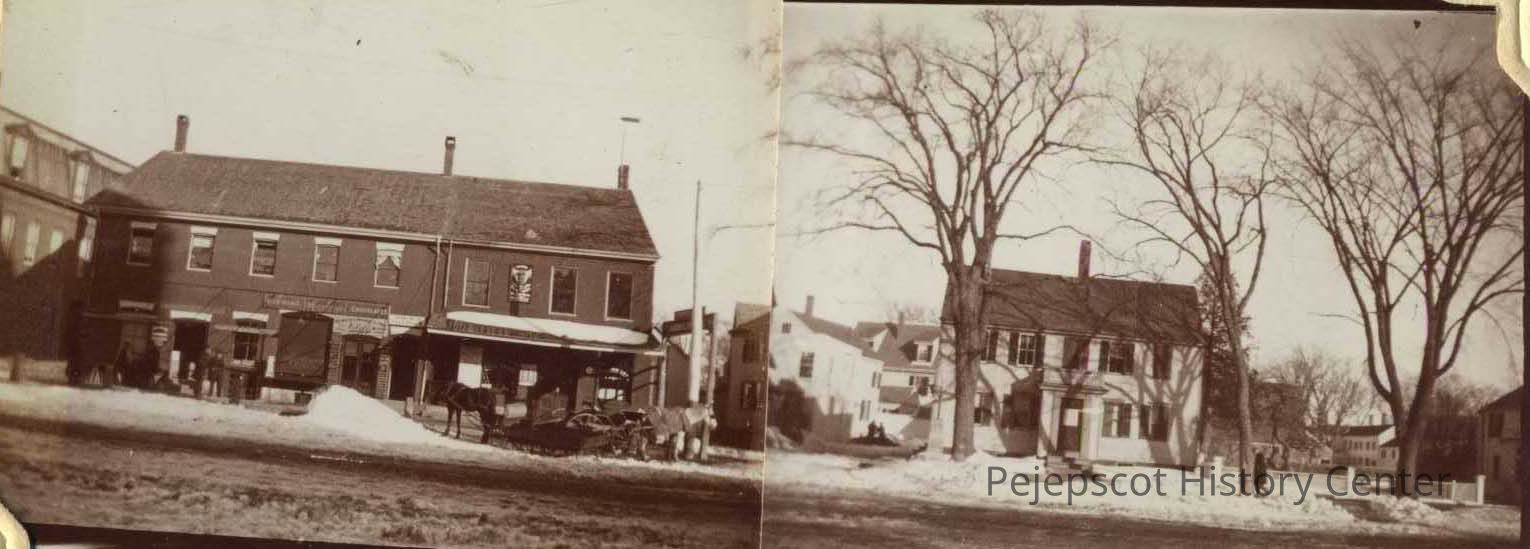 An undated B/W photograph of the east side of Maine Street to Center Street. Brunswick, Maine. Undated