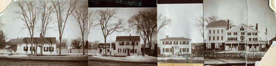 A B/W photo of the east side of Maine Street from School Street. Brunswick, Maine. Undated