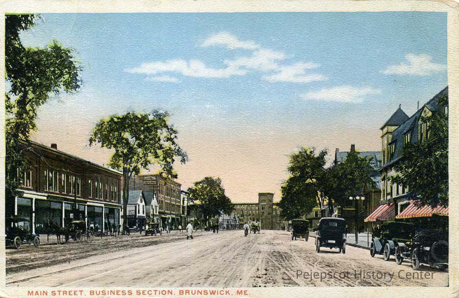 Captioned: "Main Street, Business Section, Brunswick, ME."Lexicon