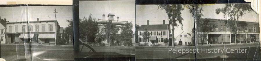 A B/W photo of the west side of Maine Street from Cumberland Street to Lincoln Street. Brunswick, ME. Undated