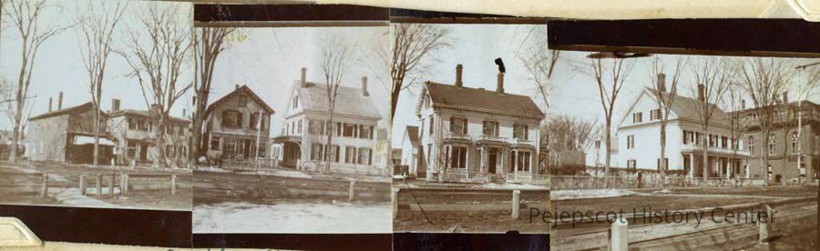 A B/W photo of the west side of Maine Street, Brunswick, ME from Everett Street to Pleasant Street. Undated