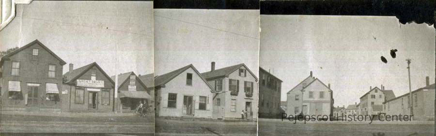 A B/W photo of the west side of Maine Street from Mill Street to Cabot Street. Brunswick, ME. Undated