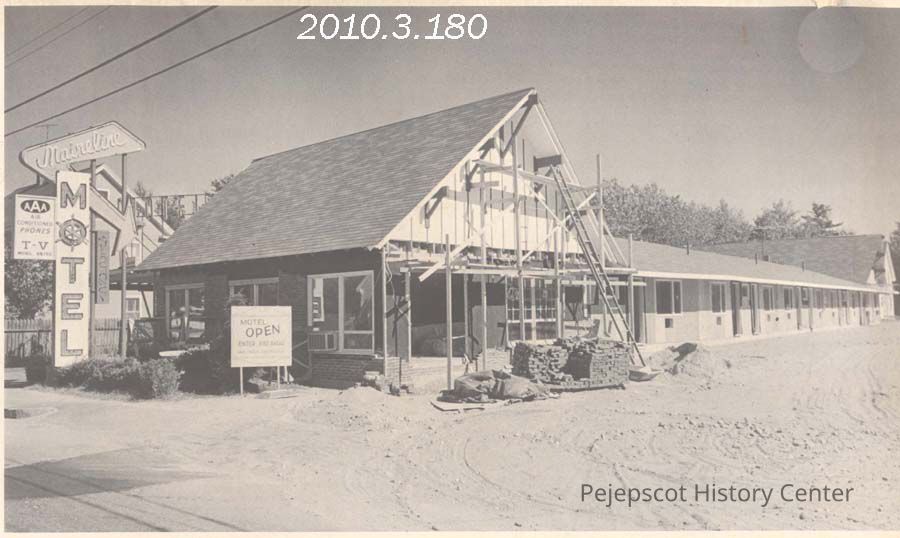 A B/W photograph of the Maineline Motel expansion construction. It is nearing completion. Photo published 8/29/1968. Undated