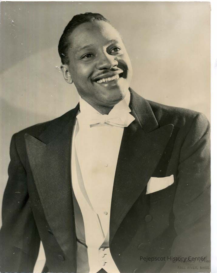 An undated black and white photograph of an unidentified man who performed at the State Hotel, 192 Maine Street, Brunswick. The photograph was taken by Freddie's Studio in Fall River, MA.