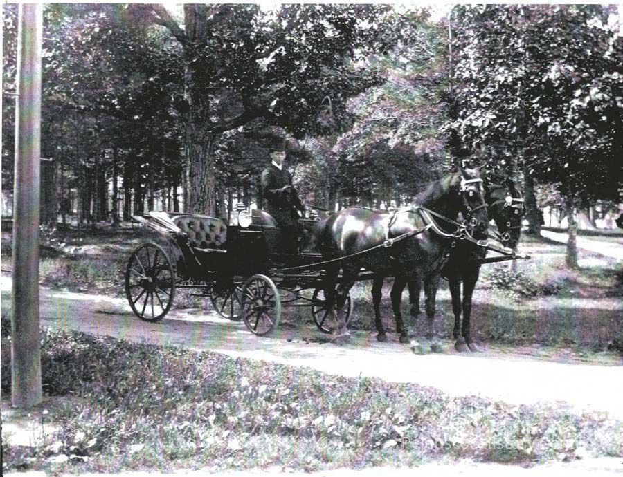 A B/W photograph of an unknown man in a horse drawn carriage. It is possible he is on the Mall in Brunswick. UndatedLexicon