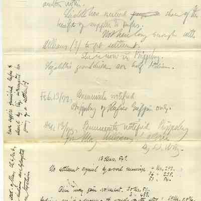 Three pieces of lined notebook paper with handwriting in pencil and pen.