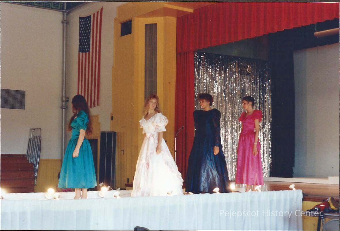 A color photograph of the Teen Queen participants doing quater turns Mara Kane, Michele Byras, Courtney Garrison and Charity Edwards.