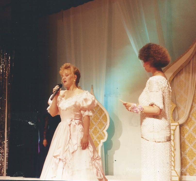 A color photograph of Mara Kane participant #1 in Gown Competition.