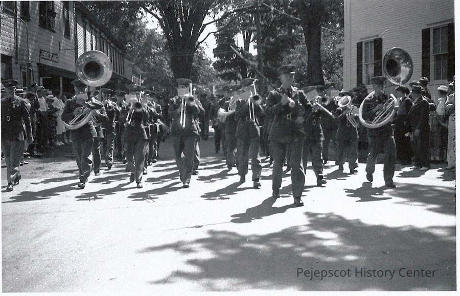 A B/W photo of a marching band in the 200th Anniversary Parade. Undated