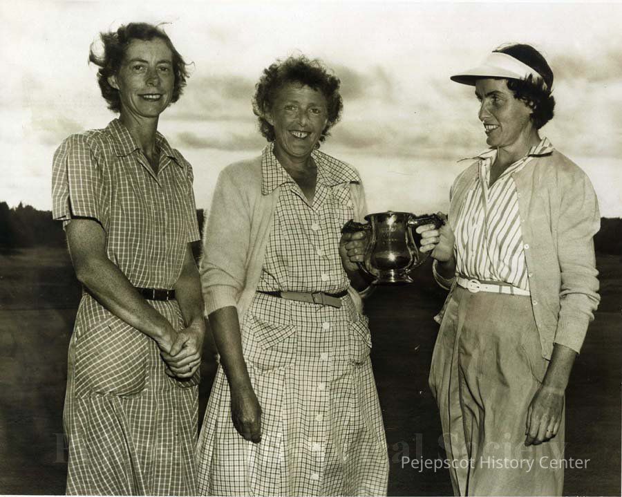 A B/W photograph of three lady golfers, Marge Johnston Boucher, ????, Ruth McCarthy. UndatedCollection