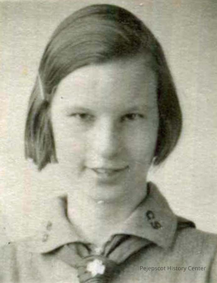A B/W photograph of Marguerite Pomeroy in the Class of 1939 grade school photo. Dated 1939.