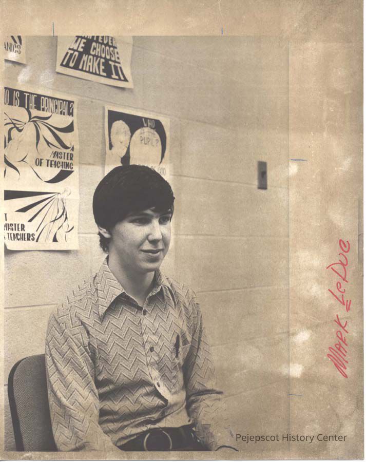 A black and white photograph of Mark LeDuc, a senior at Mt. Ararat School in Topsham, was published in The Times Record in Brunswick, Maine, on 4/29/1976. He was president of the School Council that presented a petition to the School Administrative District 75 suggesting solutions to problems at the school.