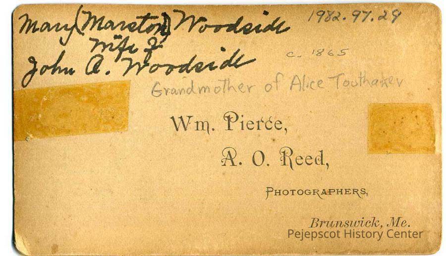 Woodside family, Marston family, Toothaker family, Photographers - Wm. Pierce, Photographers - A. O. Reed, Photographers - Brunswick