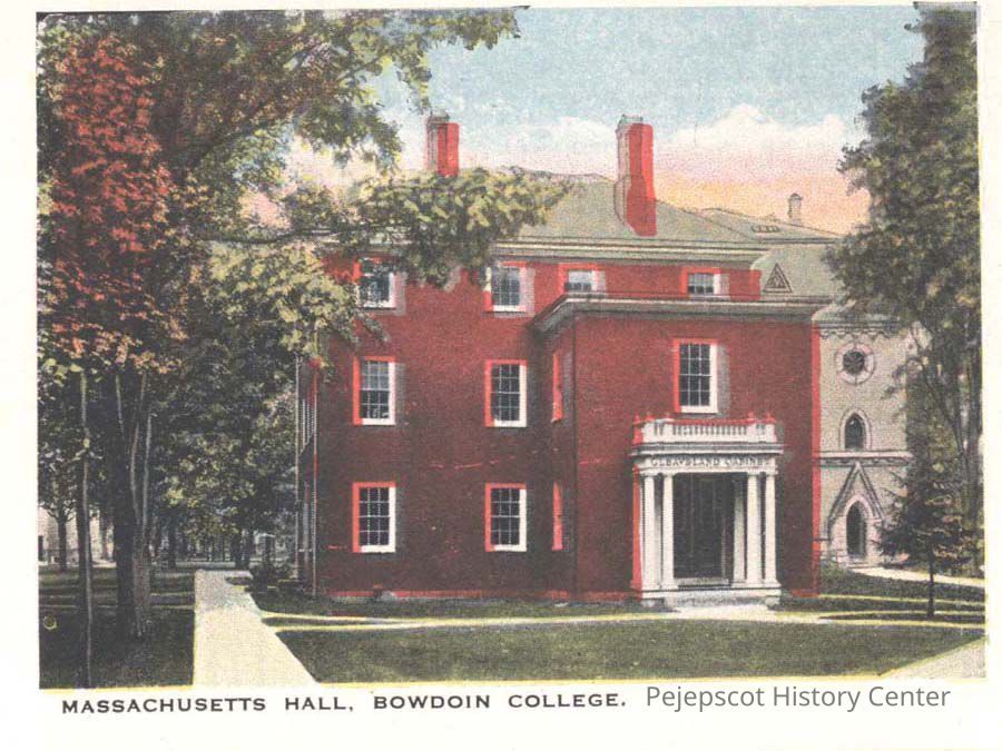 Postcard view of Massachusetts Hall, Bowdoin College, Brunswick, Maine. Date unknown.