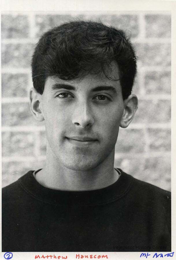 An undated black and white photograph of Matthew Hanscom, a student at Mt. Ararat School in Topsham, Maine.