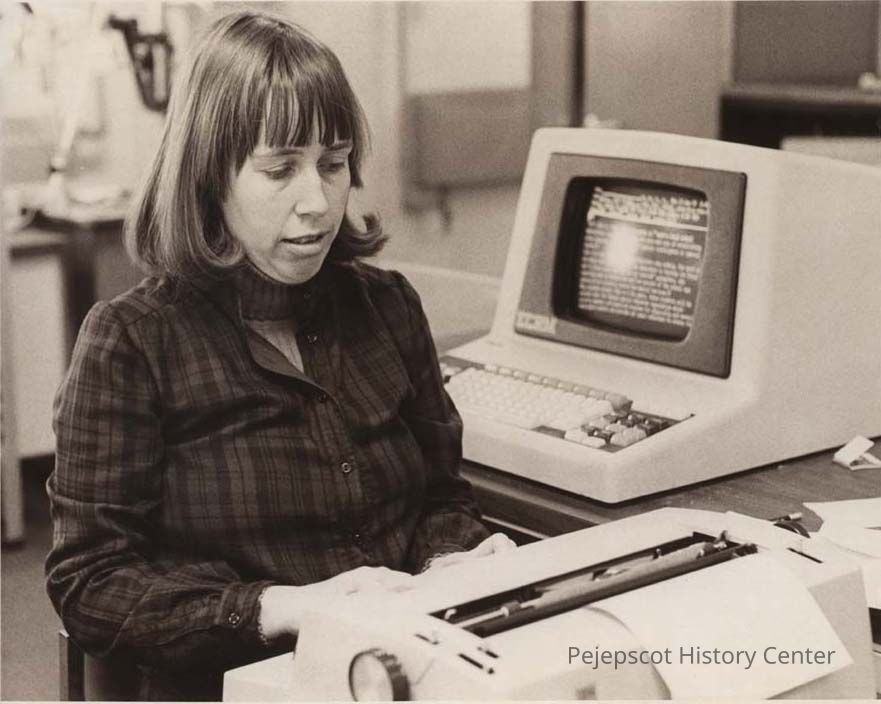 A black and white photograph of Maureen Dea, a reporter for The Times Record, is another view of 2003.546a.1077, that was published in The Times Record in Brunswick, Maine, on 1/23/1978, and of 2003.546a.1078.