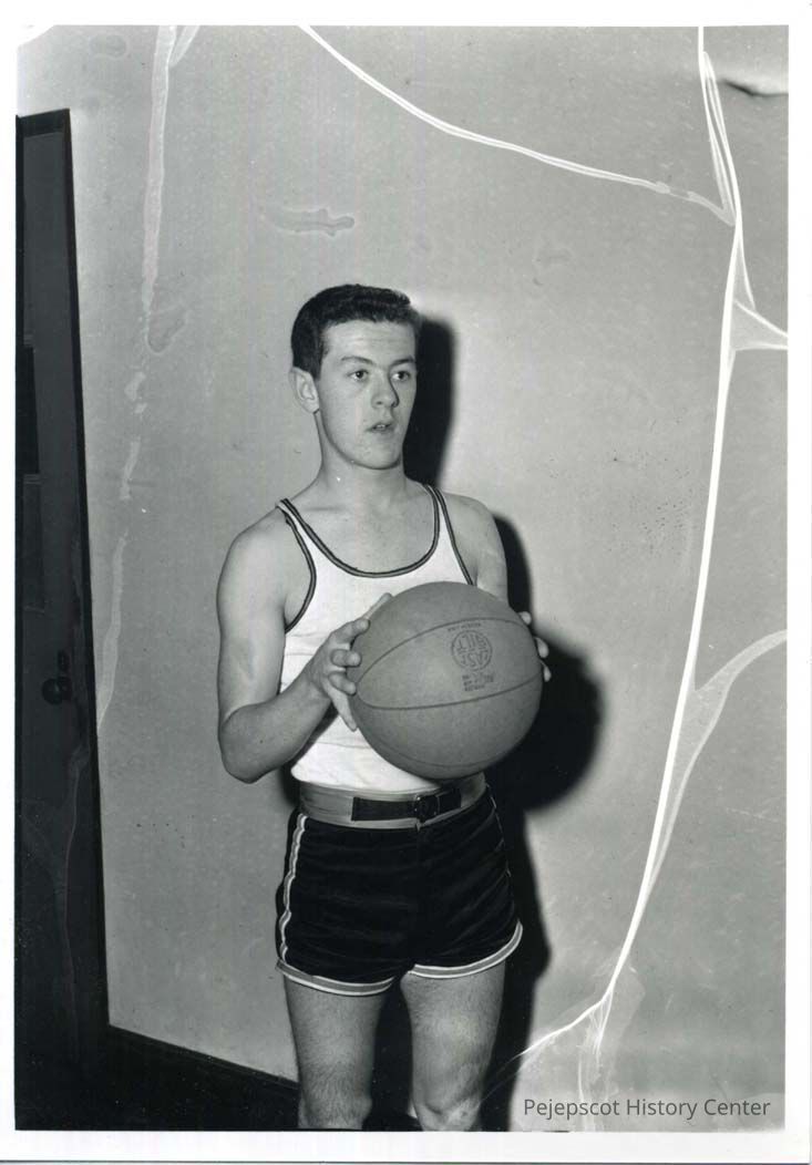 Maurice Michaud on the BHS basketball team poses with a basketball in January, 1951.