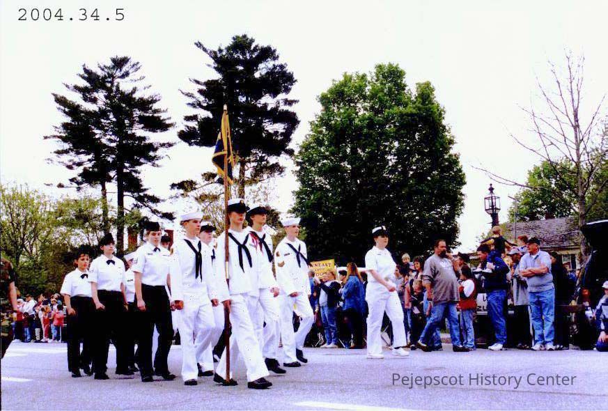 A colored photograph of a Navy marching unit in the Memorial Day Parade 2003.
