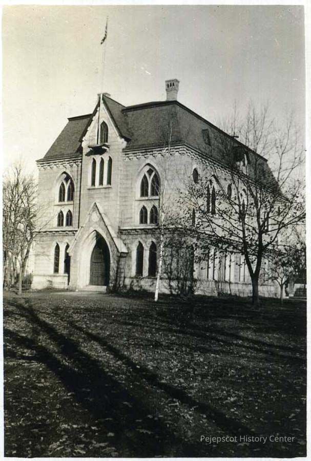 B/W photo of Memorial Hall at Bowdoin College.