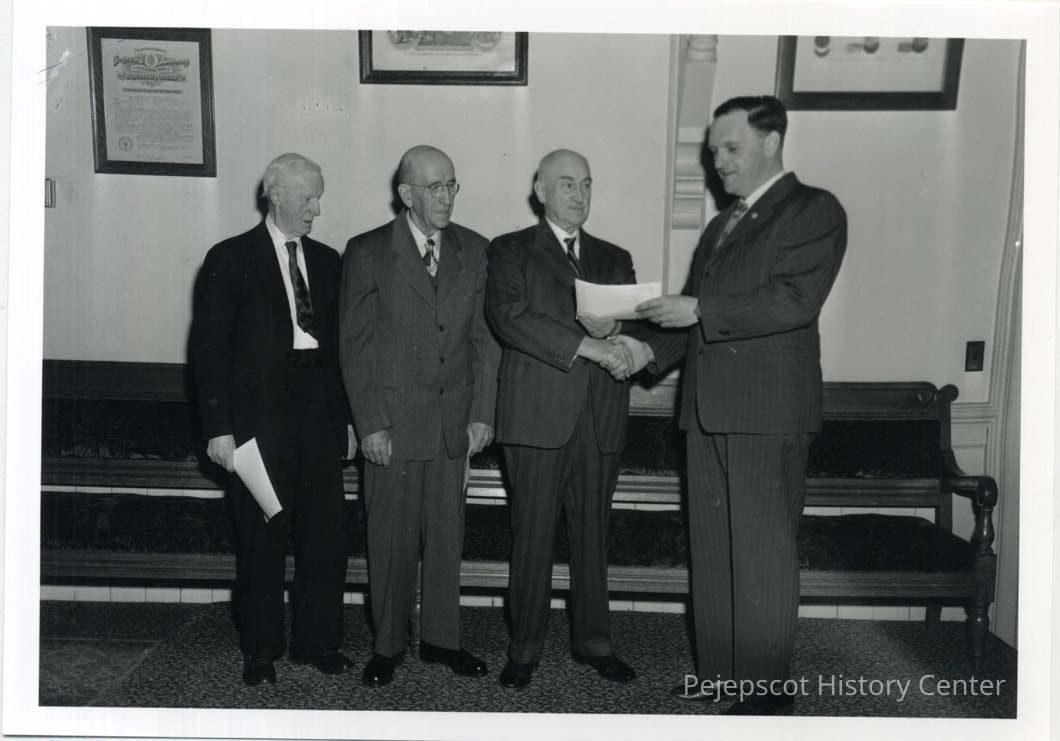 Three men receive certificates from the 4th I.O.O.F., Mr. Hennessey and two others.