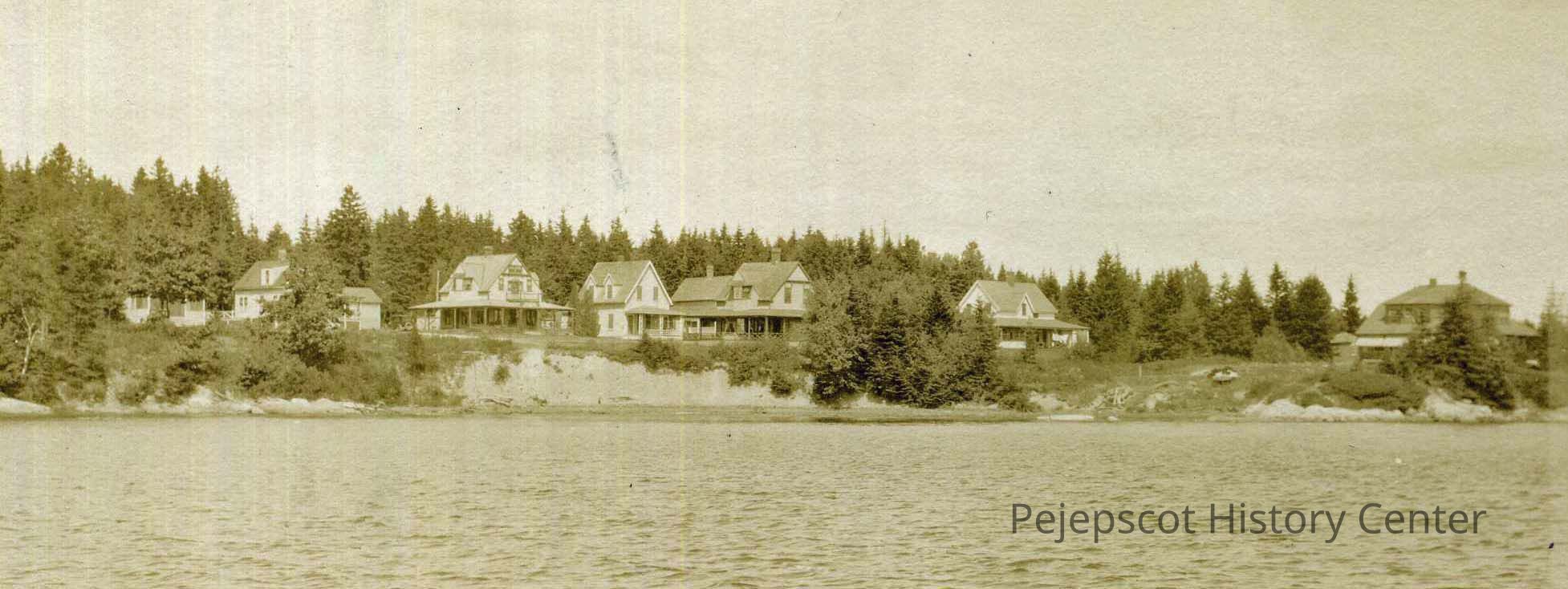 B/W photo of homes on Mere Point, Brunswick, ME. 1925.