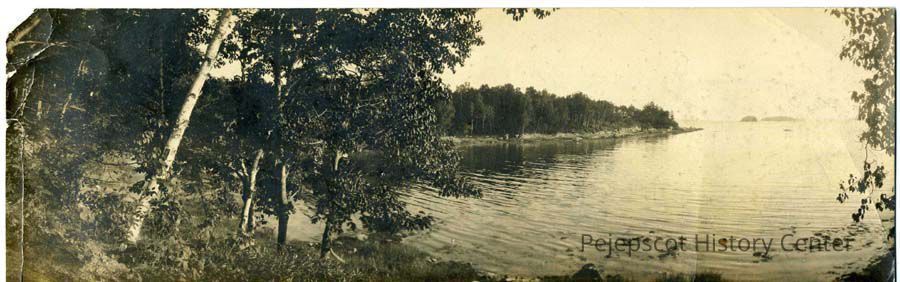 A long B/W postcard with view of Mere Point, Brunswick, ME. Undated.Lexicon