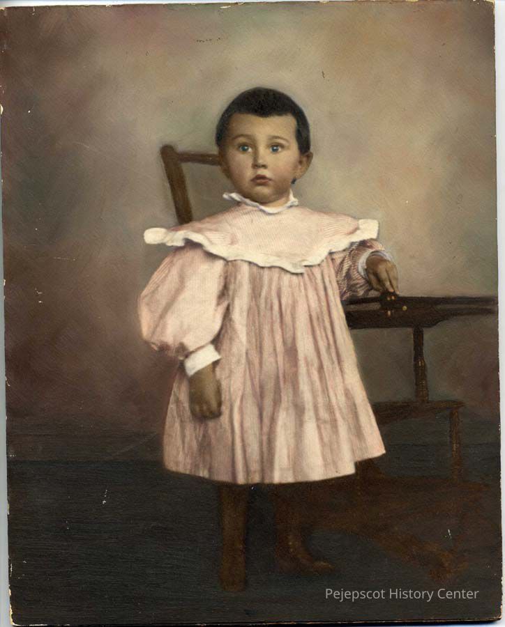 B/W portrait of Merrill Willis at an early age. Wood frame