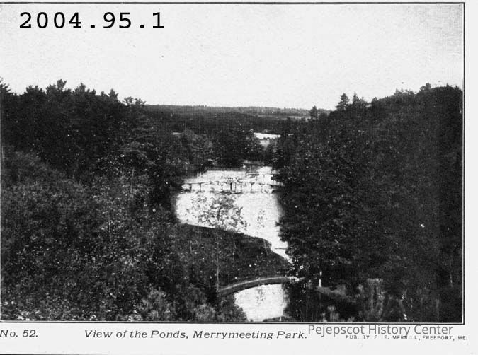 A B/W picture postcard of "View of the Ponds, Merrymeeting Park." No. 52. Published by F.E. Merrill, Freeport, ME.Collection