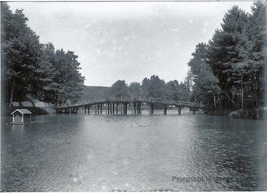 A B/W photo of the bridge over the pond at Merrymeeting Park. Undated
