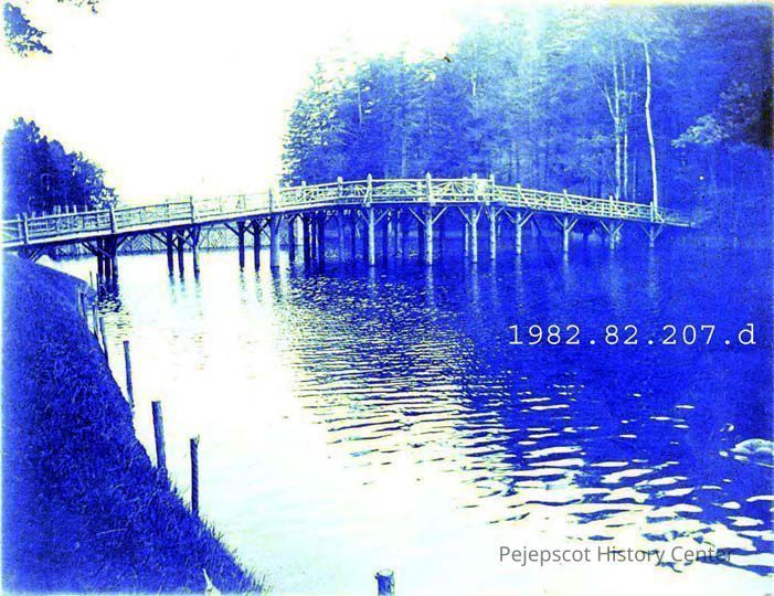 A cyanotype of the Merrymeeting Park Bridge at the pond.