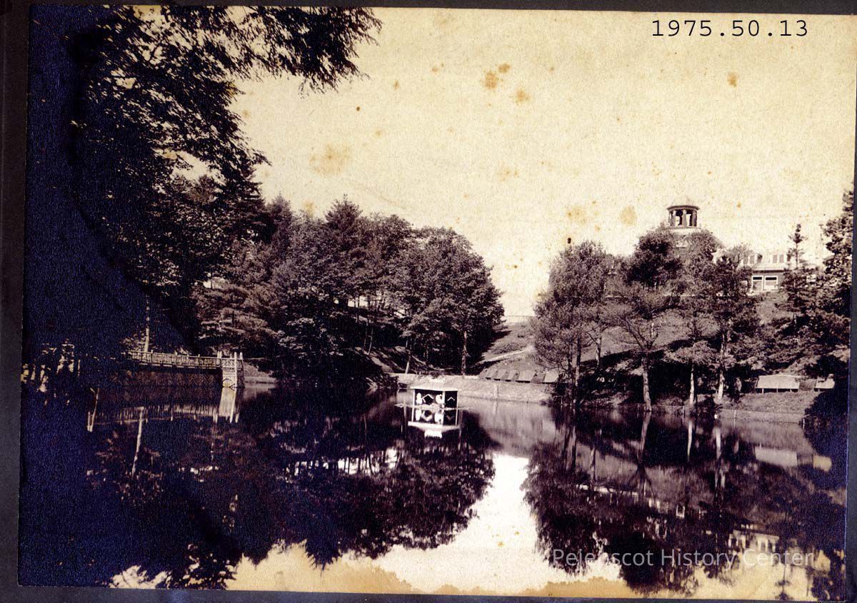 A B/W photograph of the pond at Merrymeeting Park in Brunswick, ME. Undated.