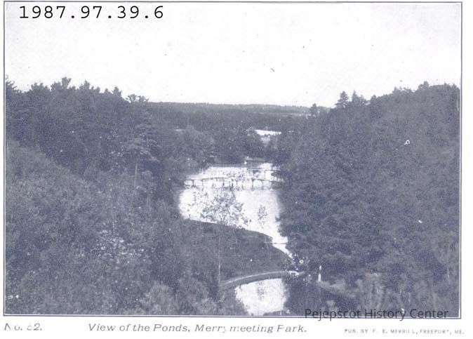 A picture postcard of the Merrymeeting Park ponds. Published by F.E. Merrill, Freeport, ME. It is marked on the front as "No. 52".Collection