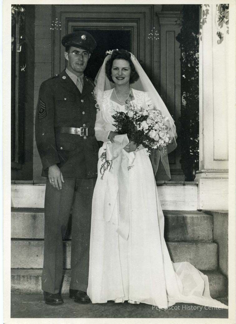 Doris Lorraine Messier and Robert Lorenzo LeBlanc after their St. John's Church wedding. 07/19/1944