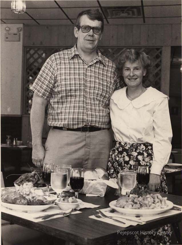 A black and white photo of Michael and Patricia Cote standing in their new restaurant, Captain Mikes, on Bath Road in Brunswick, was published in The Times Record in Brunswick, Maine, on 7/24/1991.Collection