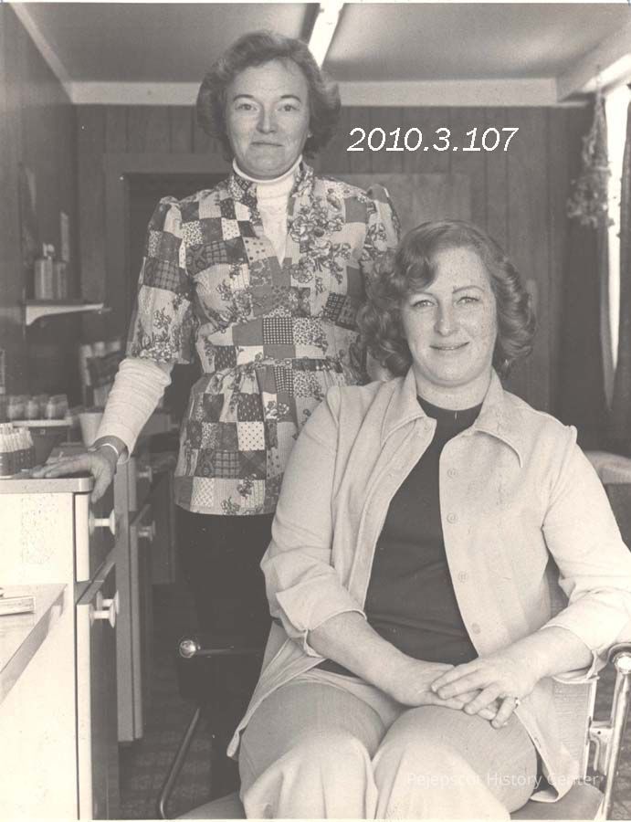 A B/W photograph of Michaleen (Mickie) Paquet opened "The Beauty Corner", on Mason Street in the St. Onge block. Mary Maillet is an employee.