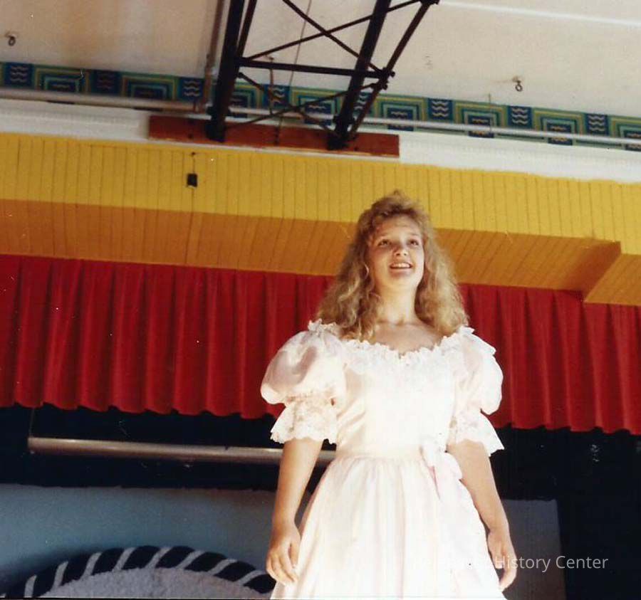 A color photograph of Michele Byras participant #2 in he gown competition.