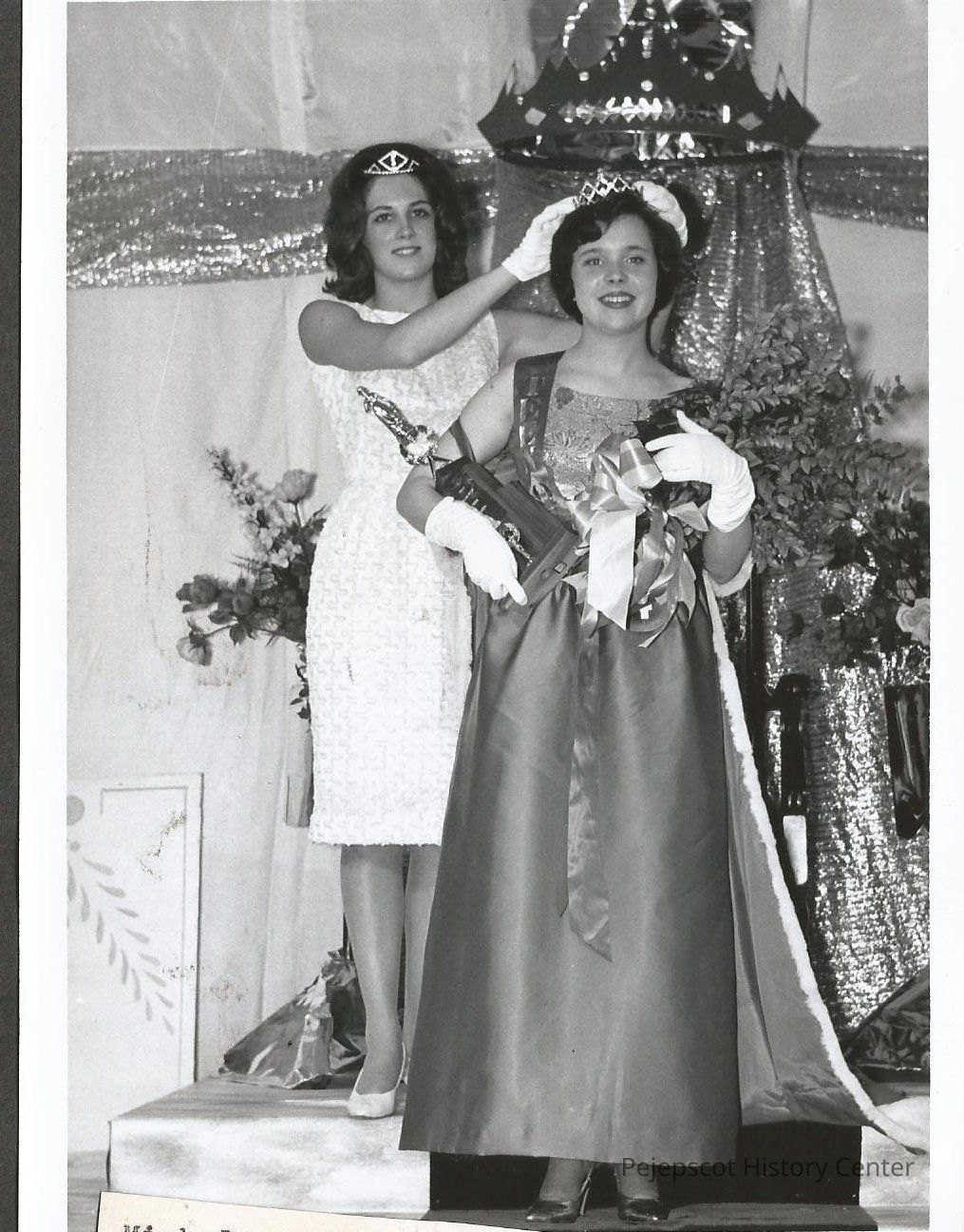 Micheline Paquette Teen Queen crowned by the first Brunswick teen queen Brunswick Sharon Saxton at the end of the pageant.