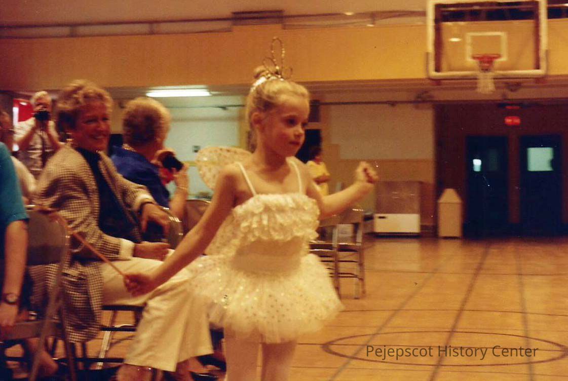 A color photograph of Michelle Tondreau, Tinkerbell, making her way to the stage. Photographer's # 1-7 CYO sponsored