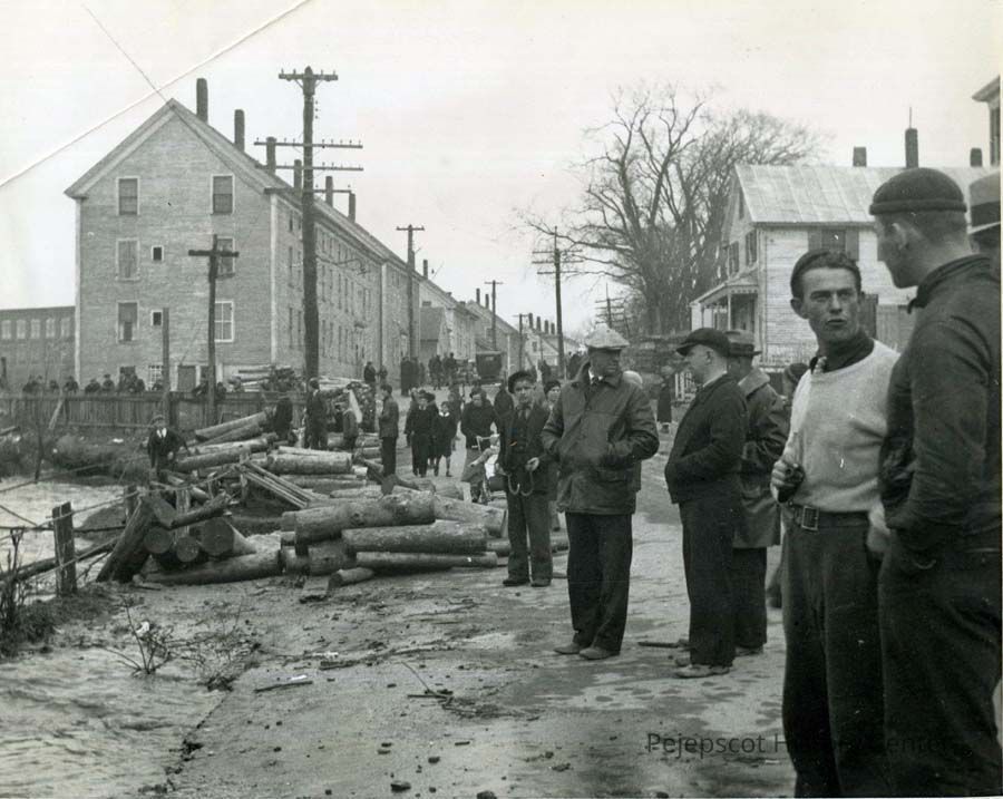 B/W photo of Mill Street, Brunswick, ME, after the 1936 flood. 1936.
