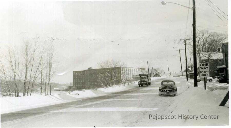 B/W photo of Mill Street, near corner of Union Street. Early 1950s.