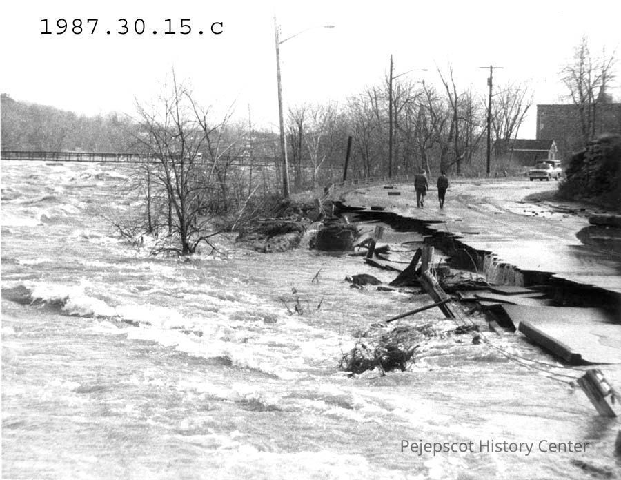 A B/W photograph of Mill Street damage in the April 1987 flood.